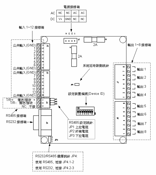 12路干接輸入及LED 狀態顯示. (輸入共地)