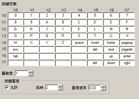 | 按鍵的原始碼, 由硬體接法決定. | |||||||||||||||||||||||||||||||||